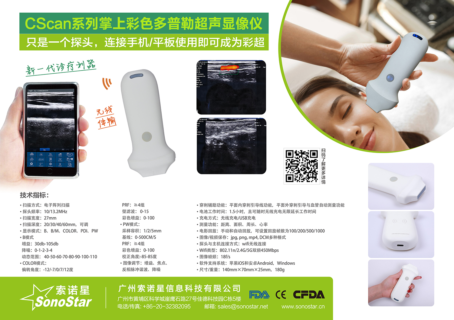 • 探头与主机连接方式:wifi无线连接