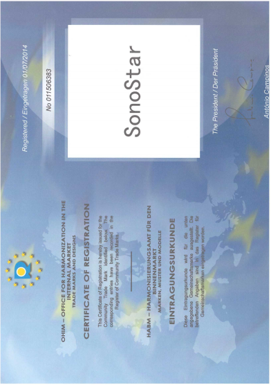 热烈祝贺索诺星SonoStar再获得了加拿大注册证